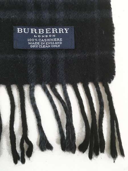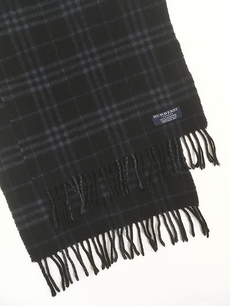 雑貨 古着 00s England製 Burberrys バーバリー チェック 高級 100% カシミア マフラー ストール 紺