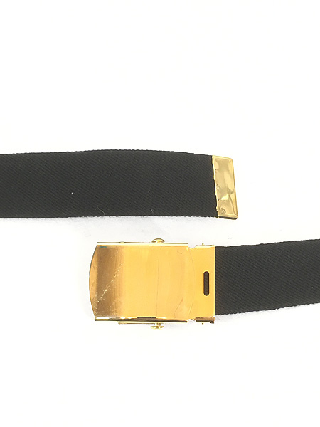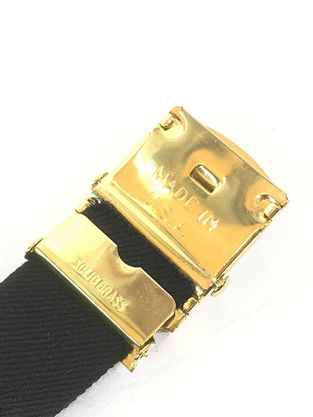雑貨 古着 USA製 Solid Brass ブラック×ゴールド シンプル コットン ガチャ ベルト Free