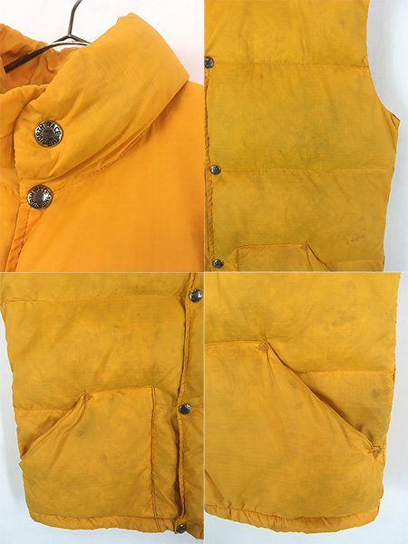 古着 70s TNF The North Face 茶タグ 軽量 ナイロン ダウン ベスト レアカラー イエロー!! M