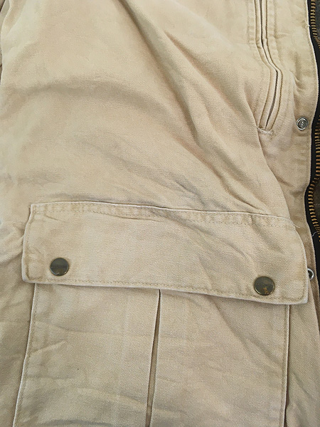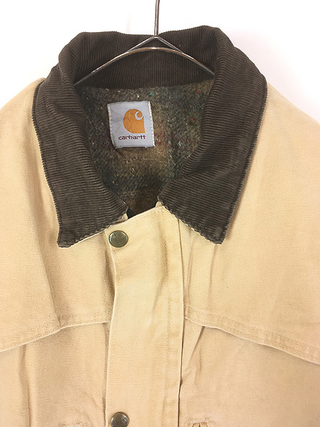 古着 00s Carhartt 裏地 チェック ブランケット ウエスタン ヨーク ベージュ ダック ミドル ジャケット XL位