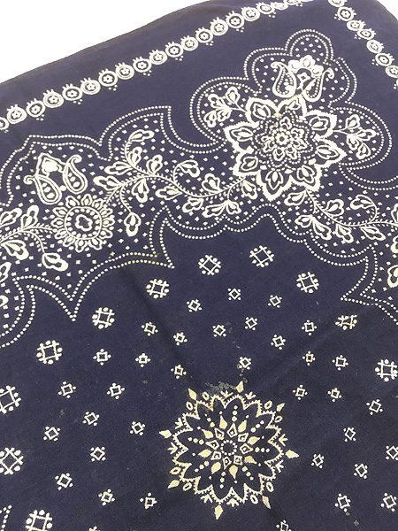 雑貨 古着 60s Elephant Brand 上鼻 FAST COLOR 花 ドット ペイズリー 100% コットン ミミ付き バンダナ 小物