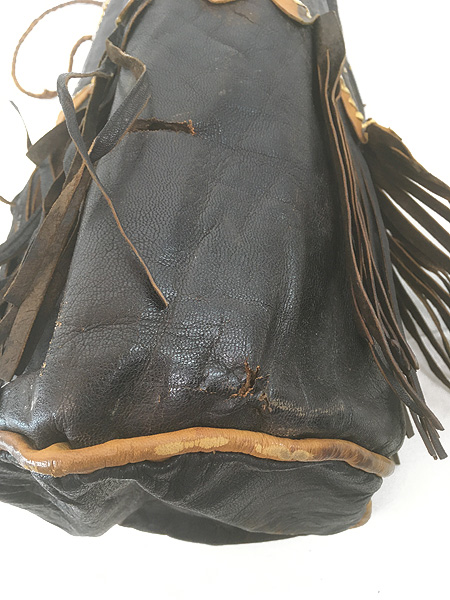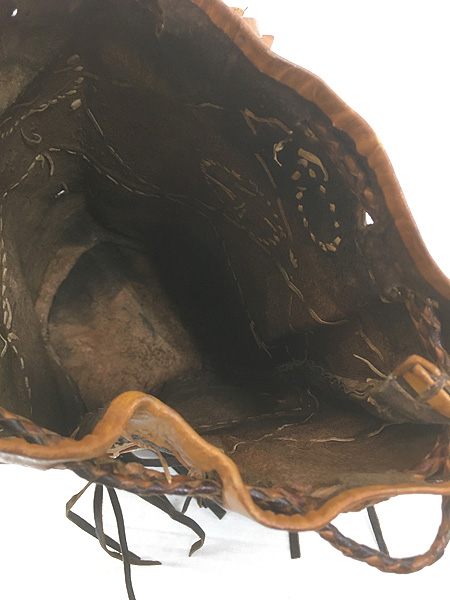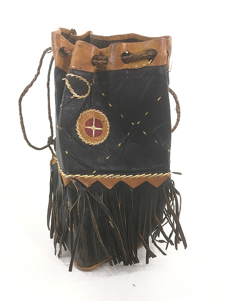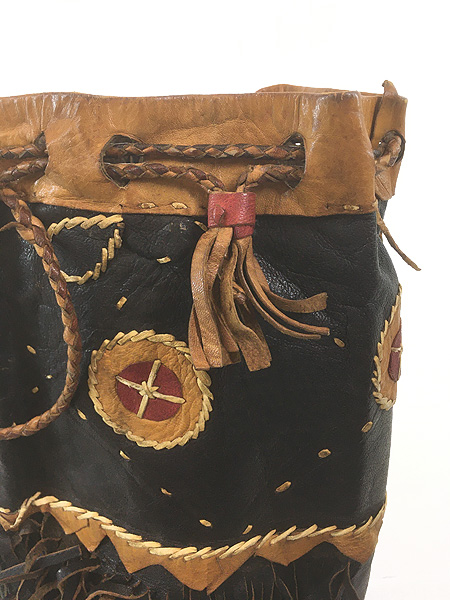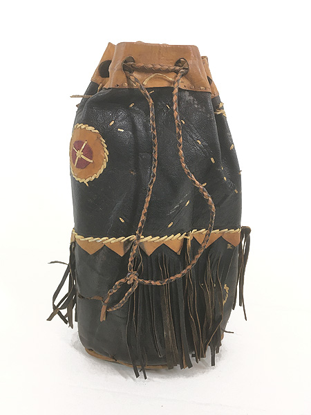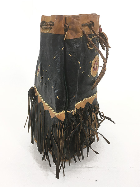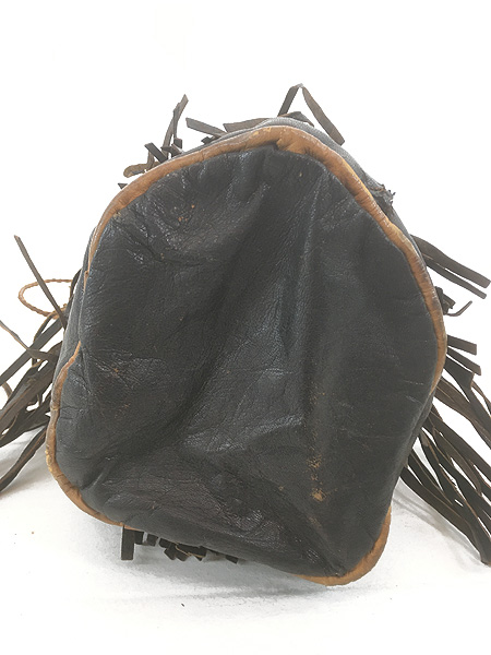 雑貨 古着 70s インディアン 巾着型 本革 スエード レザー フリンジ メディスン ハンド バッグ