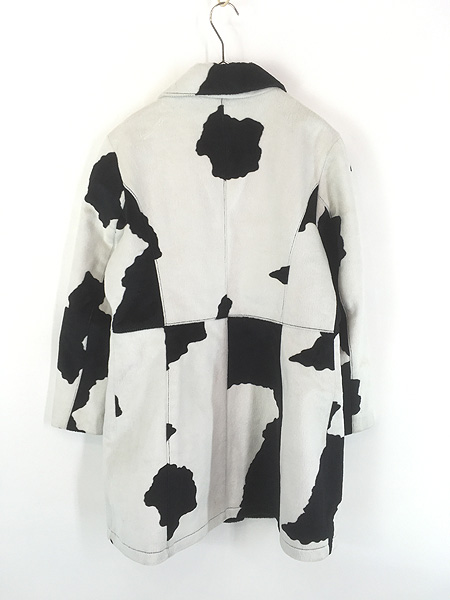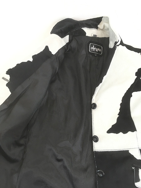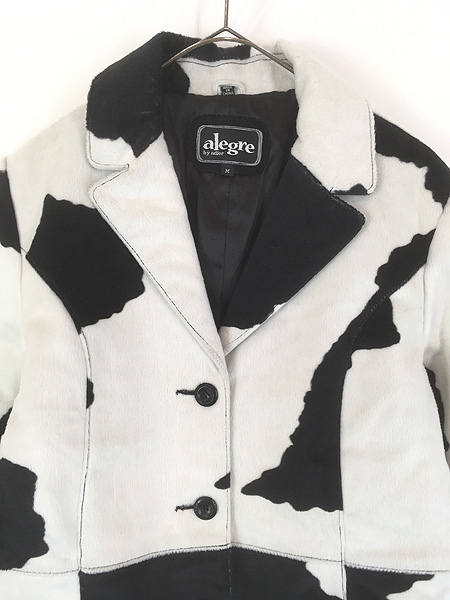 レディース 古着 90s alegre 牛柄 アニマル 総柄 フェイクファー 本革 ピッグ レザー コート M