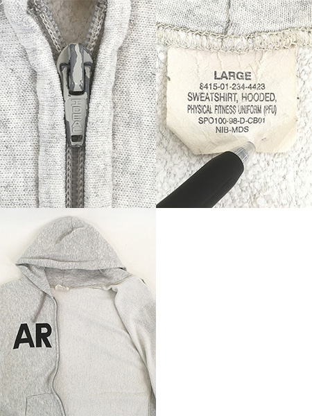 古着 90s 米軍 ARMY PFU リバース タイプ ミリタリー ジップアップ スウェット パーカー L