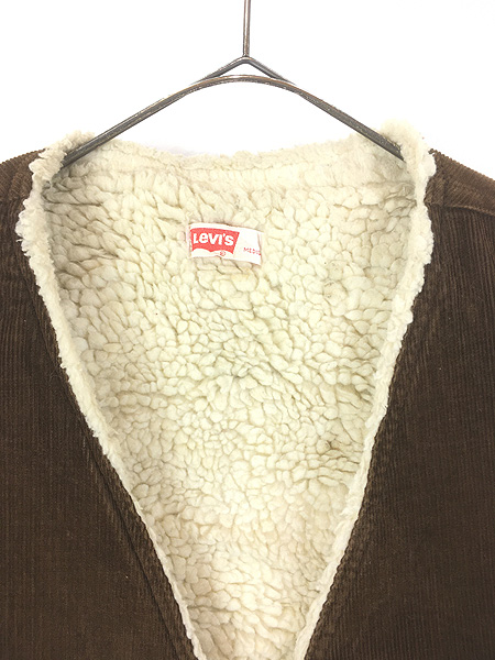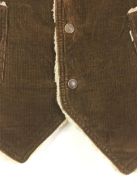 古着 70s Levi's ブラウン コーデュロイ ボア ランチ ベスト スナップボタン M