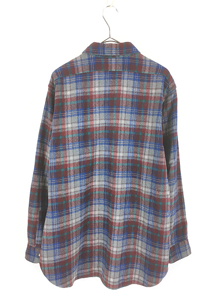 古着 80s USA製 Pendleton グレー チェック ウォッシャブル ウール シャツ L