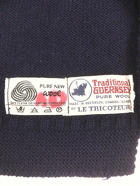 古着 70s 英国製 Le Tricoteur 人気 ガンジー フィッシャーマン ヘビー ウール ニット セーター XL位