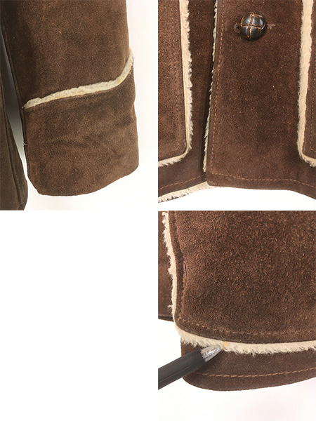 厚手スエードレザー・裏地ボアフリース・クルミボタン・2ポケット。