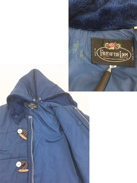 古着 90s FRUIT OF THE LOOM ドグル ボタン 中綿 ナイロン シェル ダウン フーデッド コート XL