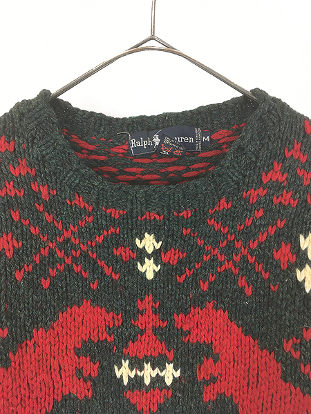 古着 90s Ralph Lauren クマ ノルディック 雪柄 ウール ハンドニット セーター M