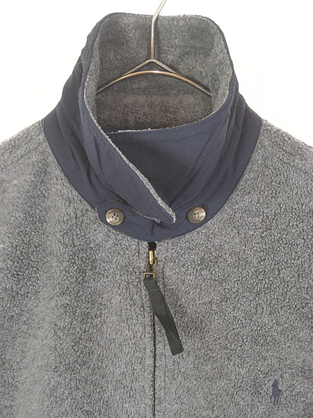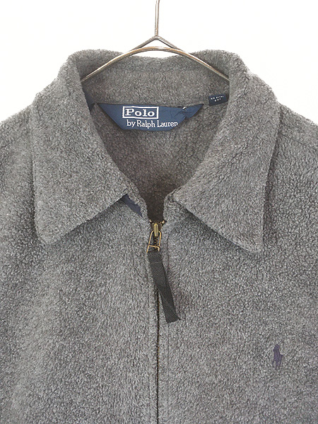 古着 90s Polo Ralph Lauren ワンポイント ソリッド フリース スウィング トップ ジャケット グレー M