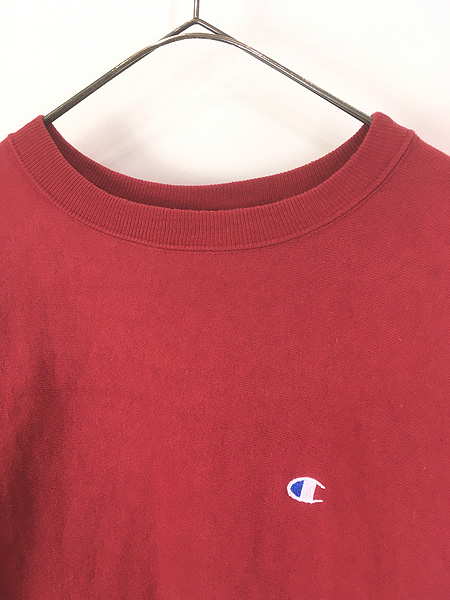 古着 90s USA製 Champion Reverse Weave 青目 ワンポイント リバース スウェット トレーナー エンジ XL