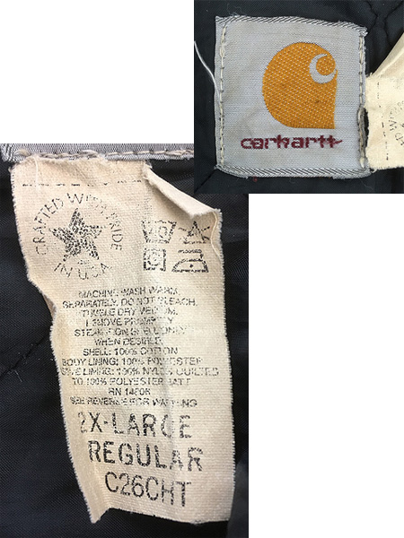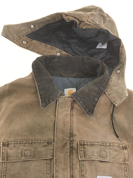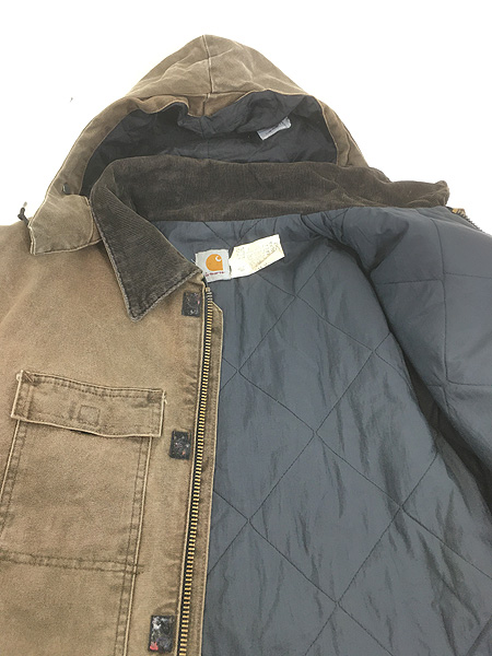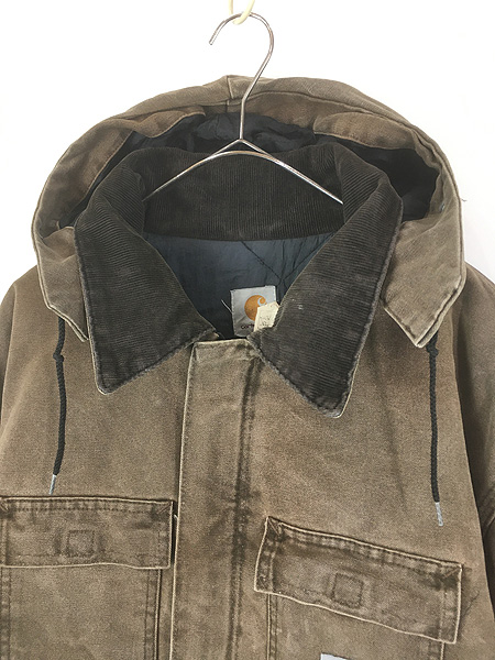 古着 90s USA製 Carhartt CHT チョコレート ダック パデット トラディショナル コート フード完備!! L