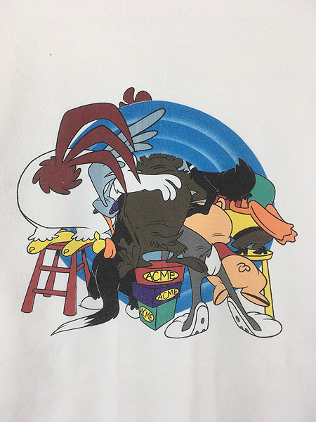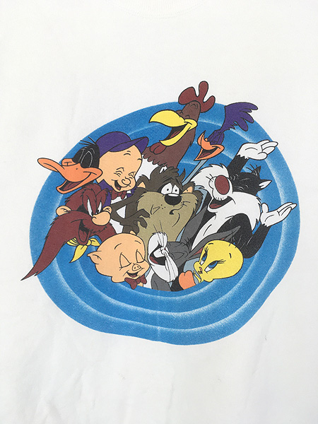 古着 90s USA製 LOONEY TUNES マルチ キャラクター 両面 プリント ヘビー スウェット トレーナー L