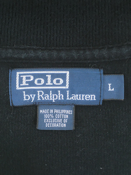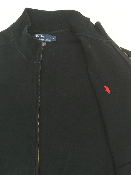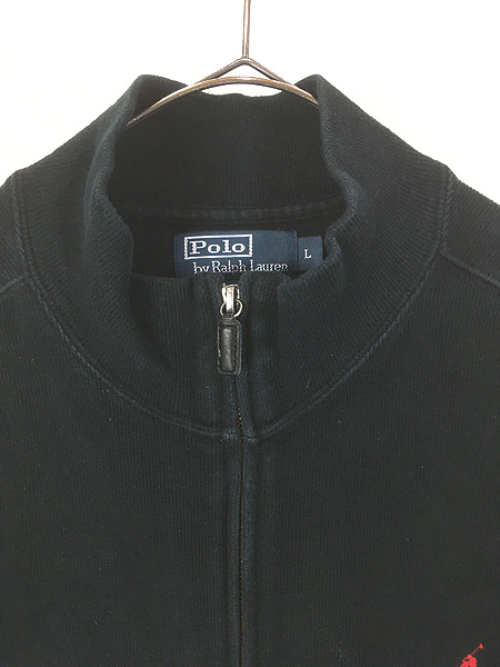 古着 Polo Ralph Lauren ワンポイント ソリッド ポケット付 ハイゲージ コットン ニット ジップ カーディガン ブラック L