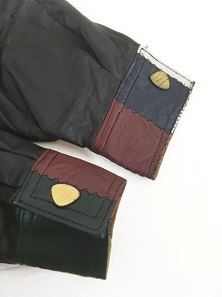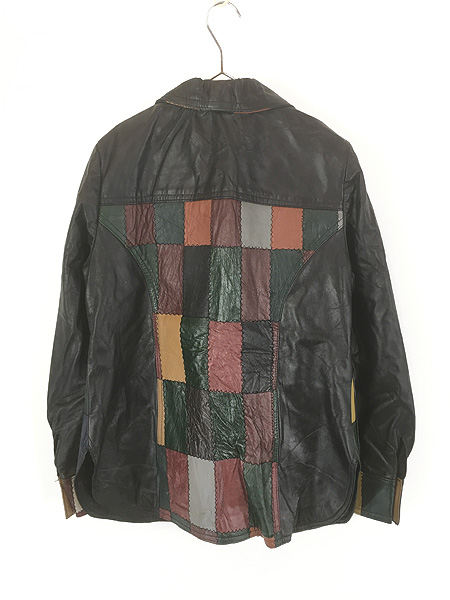 レディース 古着 70s カラフル 本革 レザー パッチワーク シャツ ジャケット L位
