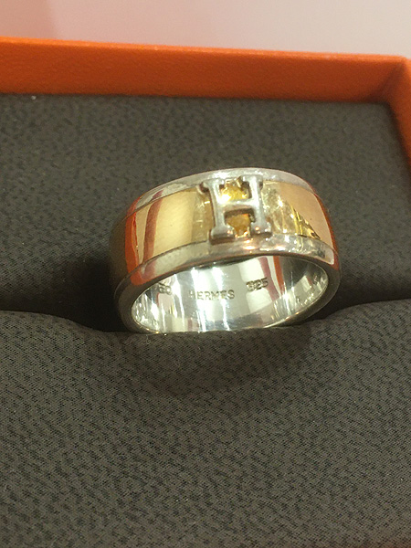 雑貨 古着 Hermes コンビ H リング 指輪 ゴールド&シルバー 11号