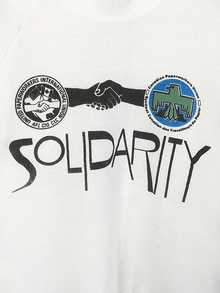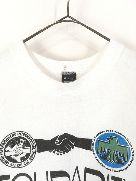 古着 80s USA製 「SOLIDARITY」 Paperworkers Union 連帯 握手 スウェット トレーナー XL