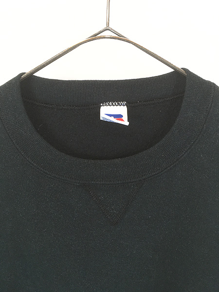 古着 90s USA製 Russell 無地 プレーン 前V セットイン スウェット トレーナー ブラック XXL