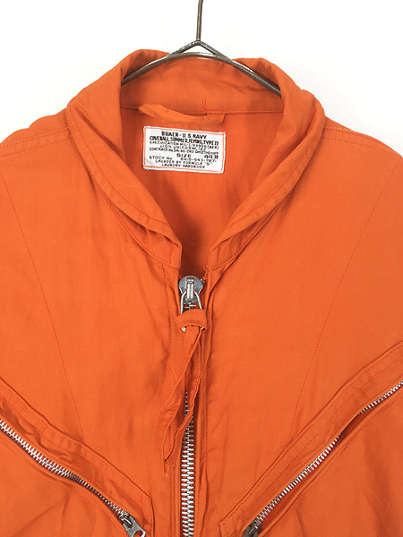 古着 50s 米軍 Buaer-US Navy 「Summer Flying Coverall Type2」 5390D サマー フライト パイロット スーツ インディアンオレンジ!! 44R