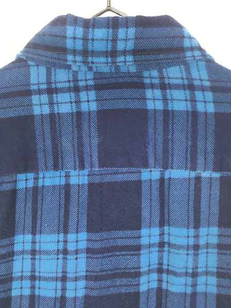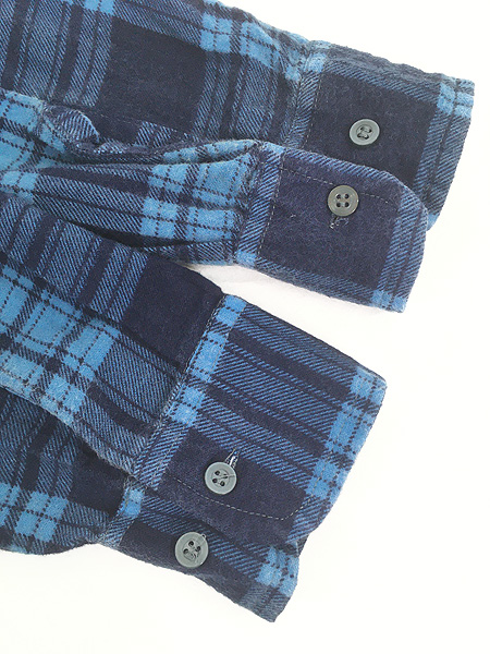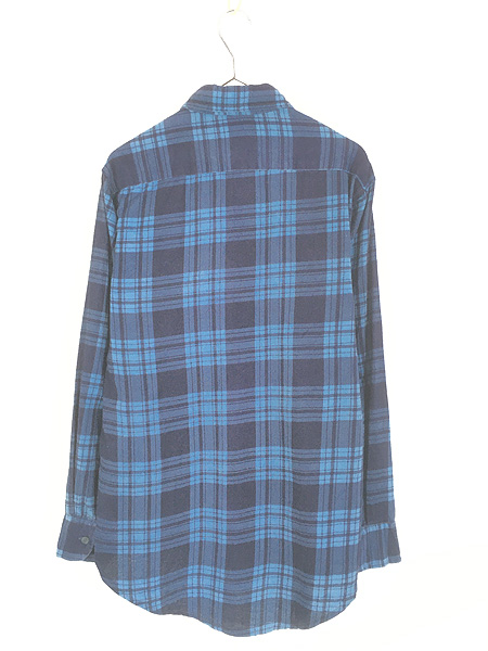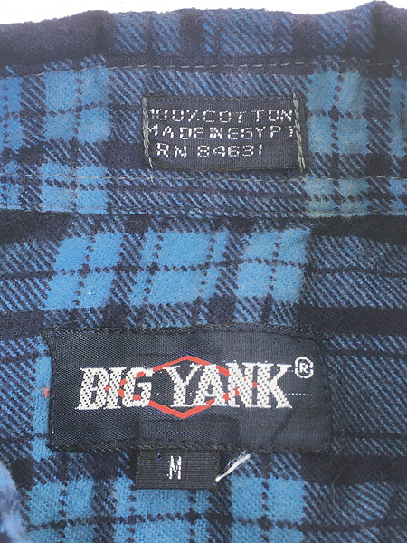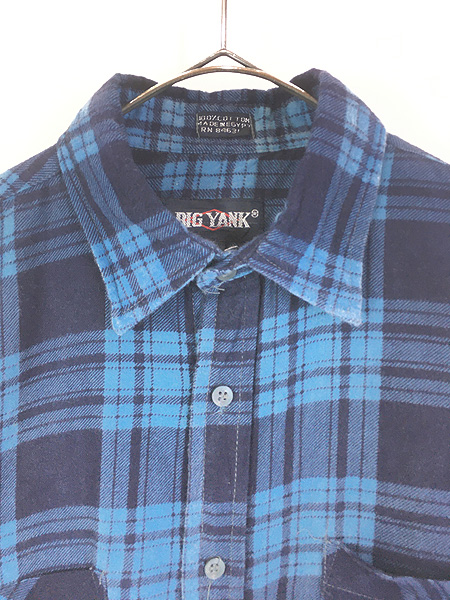 古着 80s BIG YANK ネイビー × ブルー バッファロー チェック コットン フランネル シャツ ネルシャツ M