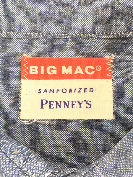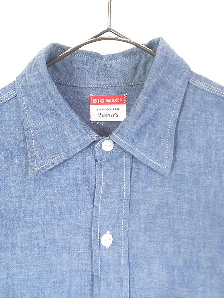 古着 60s BIG MAC Penney's 5.5oz 100%コットン シャンブレー ワーク シャツ 15 1/2 セミデッド!!