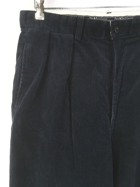 古着 90s Polo Ralph Lauren 太畝 コーデュロイ タック パンツ ストレート ネイビー W34 L28