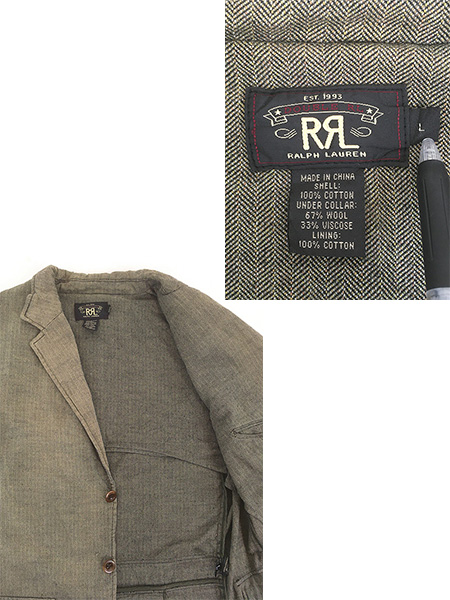 古着 00s RRL Ralph Lauren ヘリンボーン コットン テーラード ジャケット L