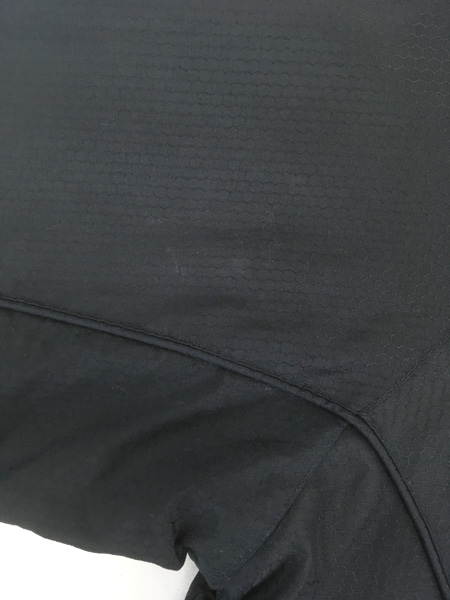 防水効果が期待できるPUコーティングされたナイロン生地、内側柔らかなフリース、袖内側中綿入りナイロン、両袖パッチ付き。