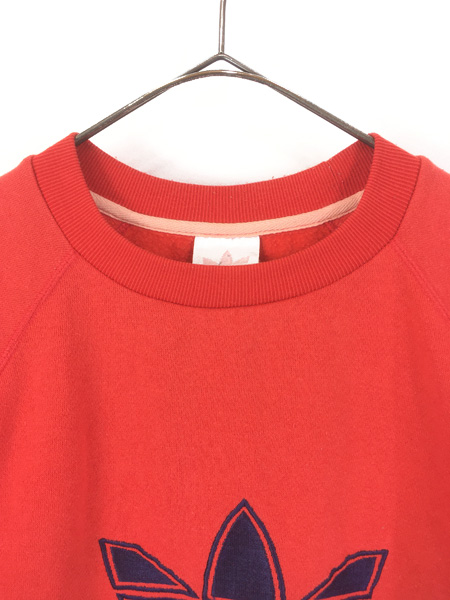 古着 80s adidas BIG トレフォイル 刺しゅう ラグラン 半袖 スウェット トレーナー M位
