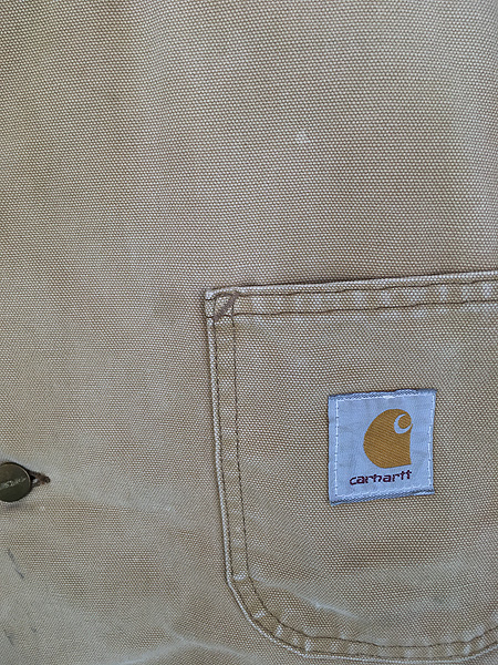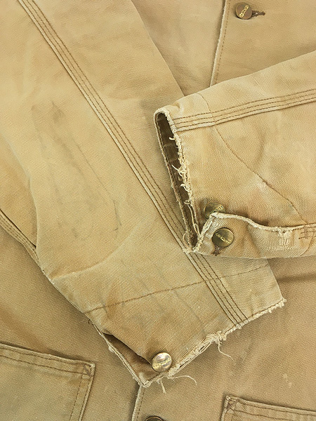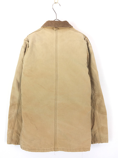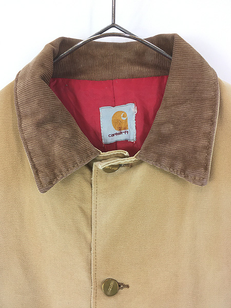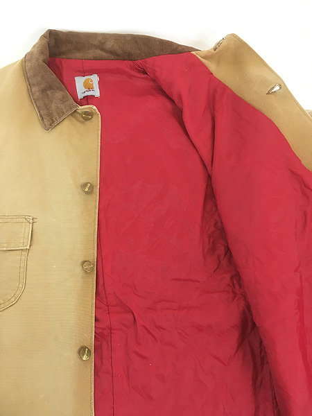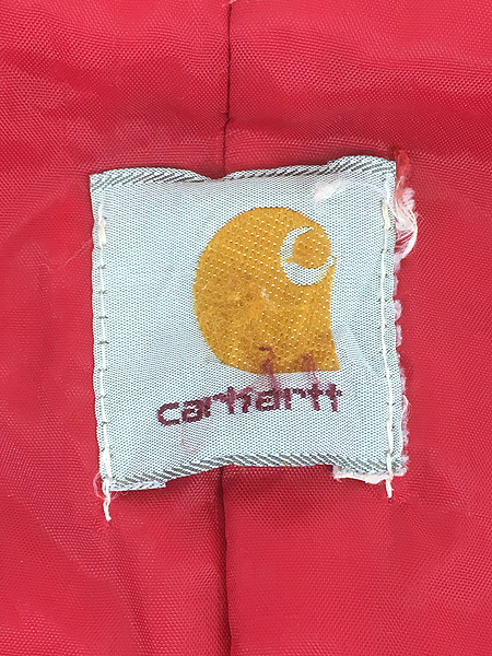 古着 80s- Carhartt レッド キルティング ライナー フェード ブラウン ダック ミシガンチョア カバーオール ジャケット XL位