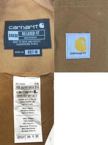 古着 10s Carhartt ウエスト ゴムマチ付き ブラウン ダック Wニー ワーク オーバーオール W37 L28