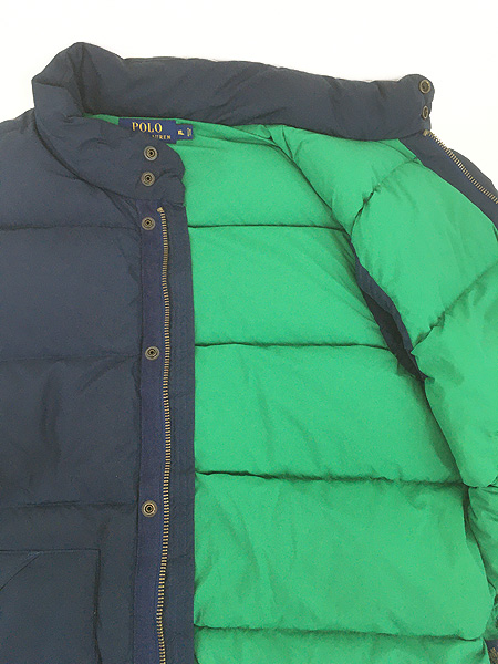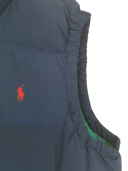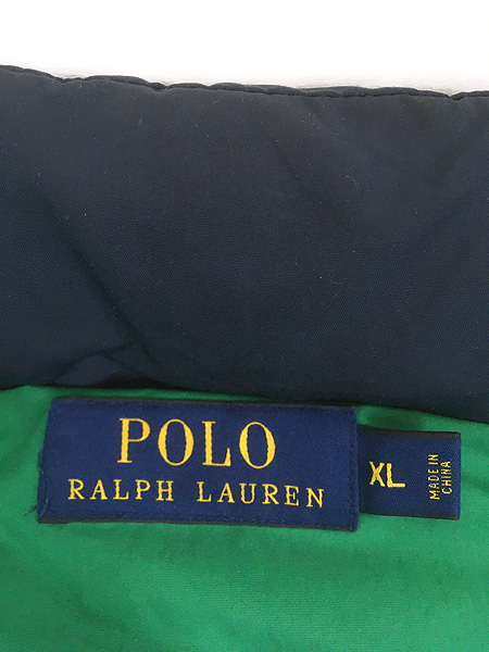古着 Polo Ralph Lauren ワンポイント ポリエステル シェル 2way ダウン ベスト ネイビー XL