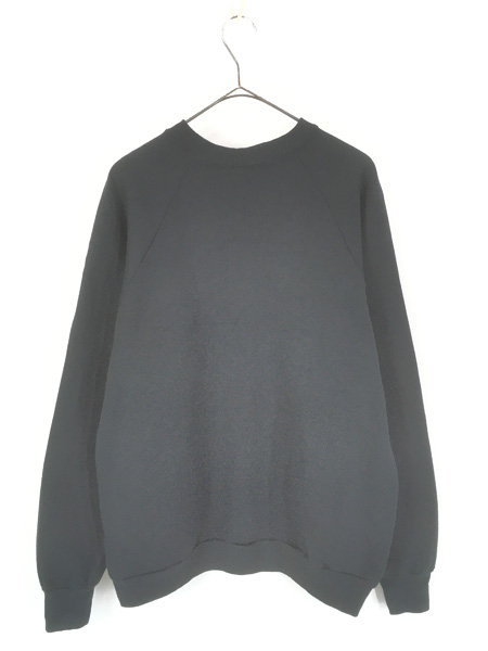 古着 90s USA製 Fruit of the Loom 無地 プレーン ラグラン スウェット トレーナー ブラック L ミント!!