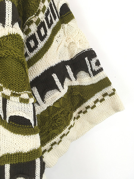 古着 COOGI 「COOGI」 文字入り 3D ランダム ボーダー コットン アクリル 半袖 ニット セーター 3XL