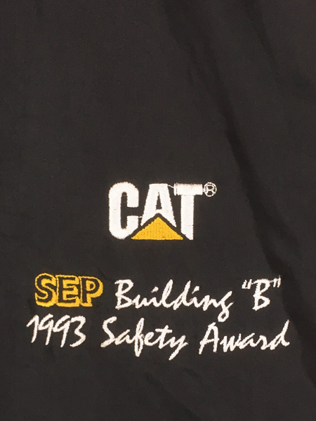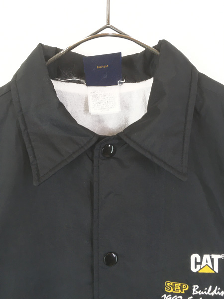 古着 90s USA製 CAT キャタピラー 重機 企業 刺しゅう ブラック コーチ ジャケット M