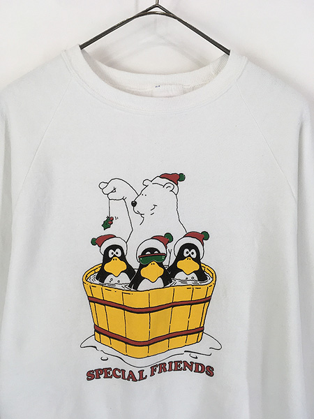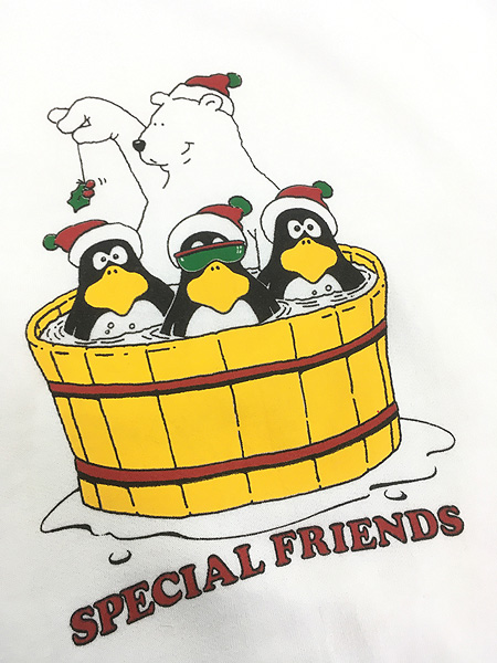 レディース 古着 90s USA製 Famous しろくま ペンギン 「SPECIAL FRIENDS」 クリスマス スウェット トレーナー M