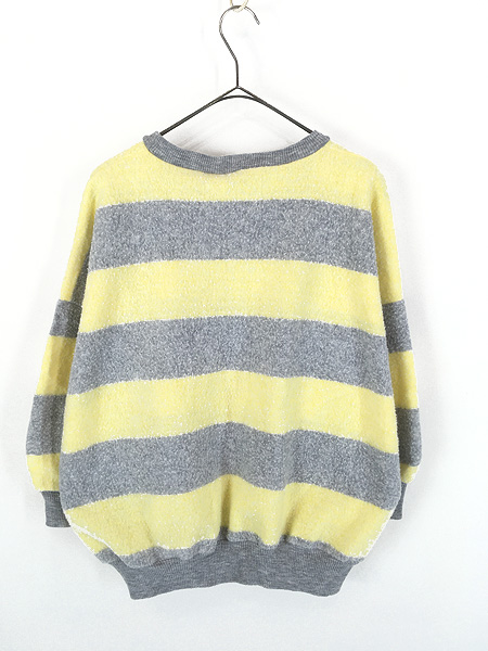 レディース 古着 80s USA製 Another Name 黄×グレー ボーダー 8分袖 起毛 フリース トレーナー L