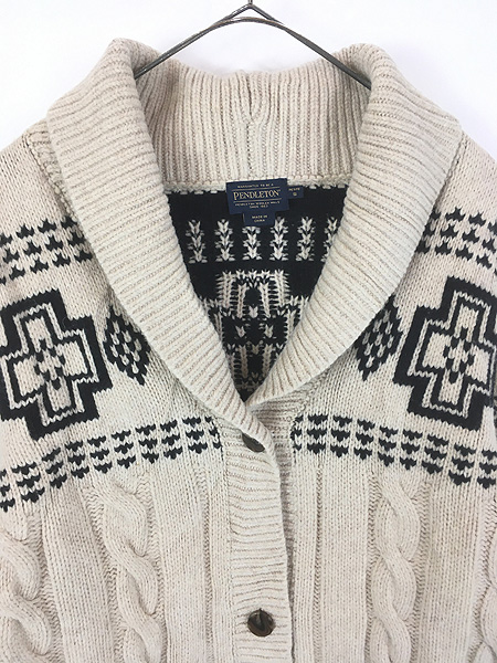 レディース 古着 PENDLETON クロス ネイティブ ケーブル ショールカラー ニット カーディガン S