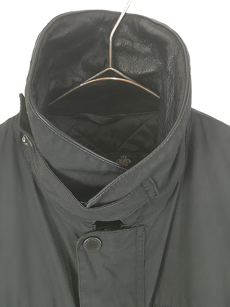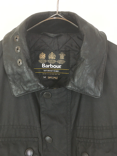 古着 Barbour International 「Surtees」 レザー襟 パデッド オイルド ワックス ジャケット コート ブラック M
