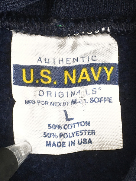 古着 00s USA製 Sofee 「United States Navy」 NAVY リフレクター ミリタリー スウェット パーカー L