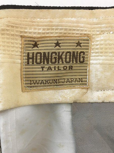 古着 50s Hongkong Tailor Iwakuni Japan 腰帯なし ハイウエスト ギャバジン ウール スラックス 側章 セレモニー パンツ W36 L31