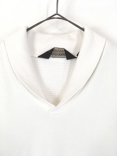 古着 80s CK Calvin Klein 無地 ソリッド 裏サーマル ヘチマ襟 プルオーバー スウェット トレーナー M