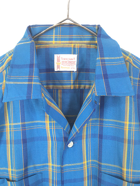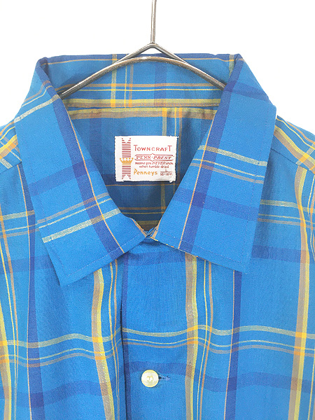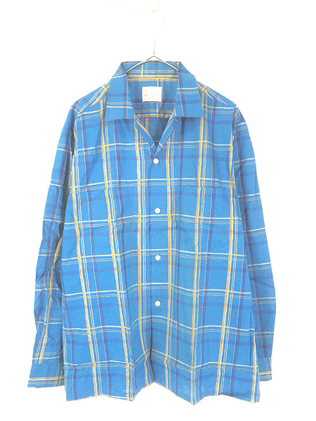 古着 Deadstock!! 60s Towncraft Penneys ブルー チェック 開襟 ボックス コットン シャツ L