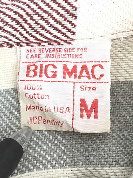 古着 70s USA製 BIG MAC ワイン × グレー × ホワイト ブロック チェック ヘビー フランネル シャツ ヘビネル M