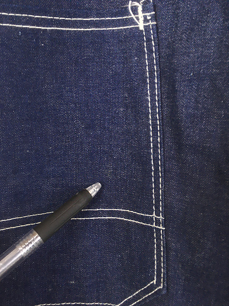 まだ糊が残る100%コットンデニム・スペードボタン・黒ラッカードーナツボタンフライ・バックポケット内側当て布なし&ユニオンチケット。