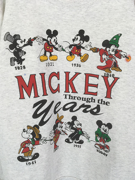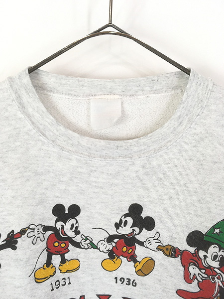 古着 90s USA製 Disney Mickey 「Through The Years」 歴代 ミッキー スウェット トレーナー XL