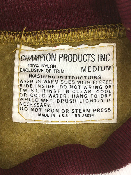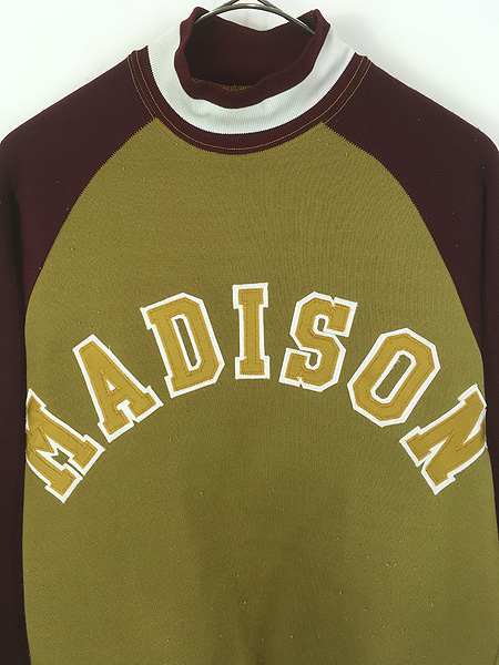 古着 60s USA製 Champion Products 「MADISON」 ナンバリング パッチ ハイネック 裏起毛 ナイロン スウェット M