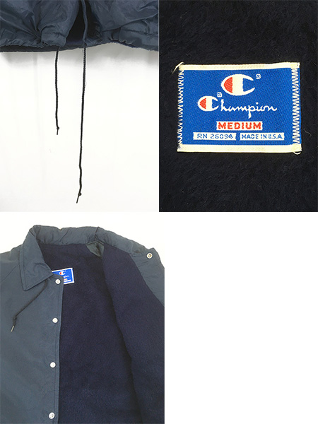 古着 80s USA製 Champion 裏ボア 無地 ソリッド 2way オールド ナイロン コーチ ジャケット M