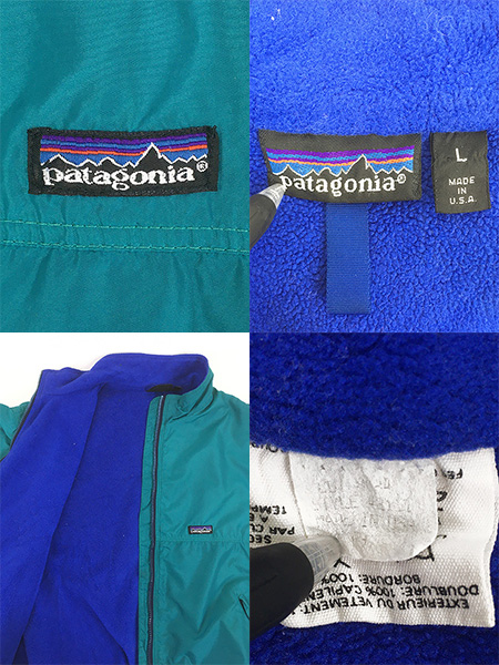 古着 89s USA製 Patagonia 裏地 フリース シェルド シンチラ シェル ジャケット 緑 L
